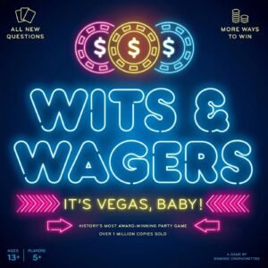Wits & Wagers: Las Vegas Baby es un juego de mesa tipo party donde no gana el que más sabe, sino el que mejor apuesta. A través de preguntas con respuestas numéricas, los jugadores estiman valores y luego apuestan fichas al estilo casino de Las Vegas. El conocimiento ayuda, pero la intuición, la deducción y el riesgo son igual de importantes. Es rápido, divertido y perfecto para grupos grandes.