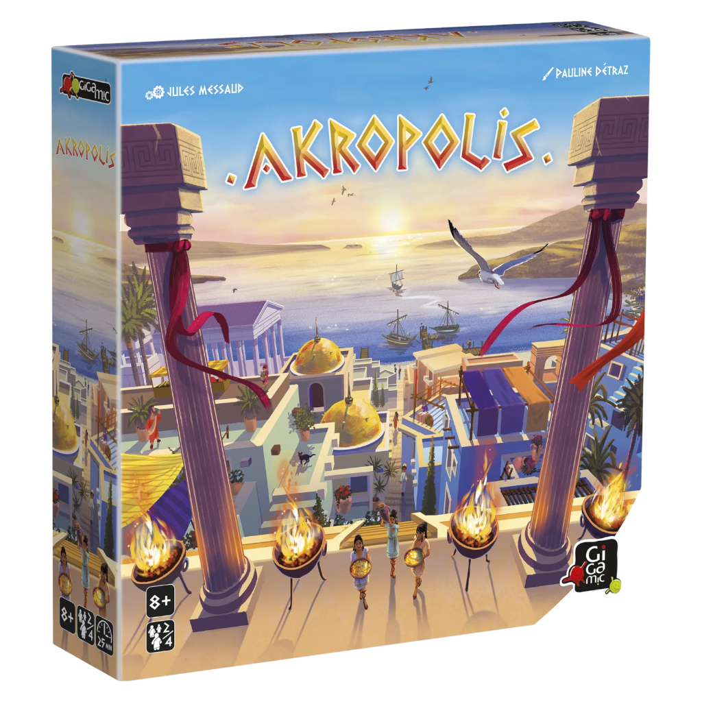 En Akropolis, los jugadores se convierten en talentosos arquitectos encargados de desarrollar su ciudad construyendo viviendas, templos, mercados, jardines y cuarteles. Cada decisión afecta la armonía urbana y la reputación de la ciudad, buscando superar a las demás mediante planificación estratégica y el uso eficiente de plazas.
