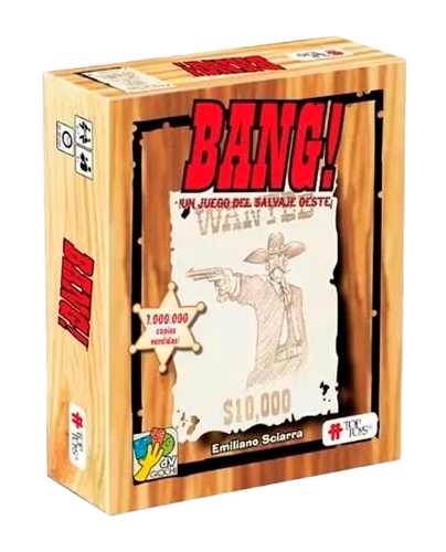 BANG! es el clásico juego de cartas que recrea un duelo del viejo oeste al mejor estilo spaghetti western. Cada jugador recibe un Rol secreto y un Personaje con habilidades especiales que marcarán su estrategia. El Sheriff debe enfrentarse a los Forajidos y al Renegado, los Forajidos intentan acabar con el Sheriff, los Alguaciles protegen a su líder, y el Renegado juega en las sombras buscando ser el último en pie. Solo el Sheriff revela su rol desde el inicio, lo que mantiene la tensión y el misterio durante toda la partida.