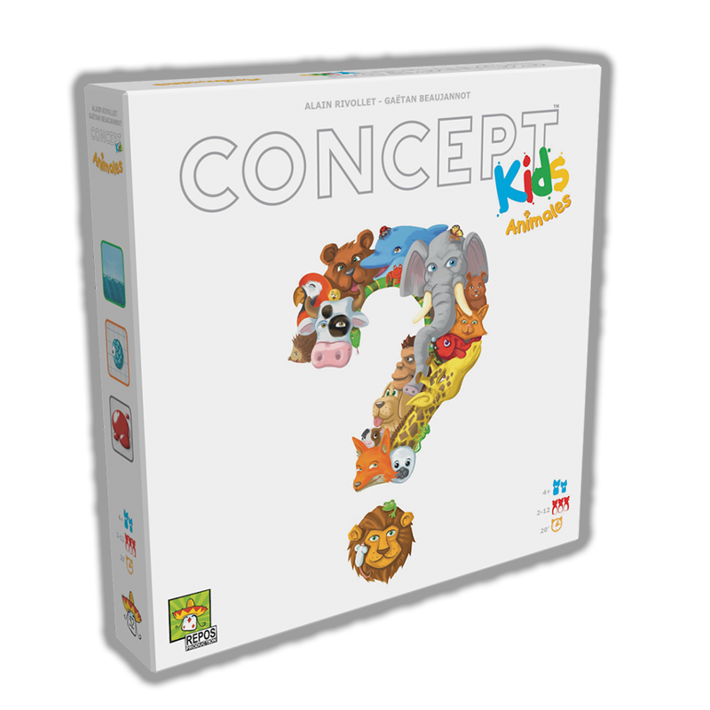 Concept Kids Animales es una versión cooperativa del juego Concept, pensada especialmente para niños que todavía no saben leer. En este juego, los pequeños colocan peones sobre íconos ilustrados en el tablero para dar pistas sobre las características del animal que los demás deben adivinar. El objetivo es sencillo: robar 12 cartas y tratar de descubrir la mayor cantidad posible de animales en equipo para sumar puntos juntos.