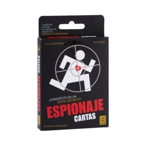 Espionaje: Cartas es un juego dinámico y muy divertido en el que debes usar tu ingenio para descubrir las tres variables de un archivo confidencial. Cada jugador recibe un mazo de 15 cartas negras llamado “agenda personal”, mientras que el mazo del “archivo confidencial” se divide en tres grupos de 5 cartas: ubicaciones (Londres, Atenas, París, Tokio y Panamá), espías (Espía Naranja, Azul, Rojo, Verde y Blanco) y dispositivos (Jetpack, Avión, Gas Letal, Satélite y Helicóptero). Se selecciona una carta de cada grupo al azar y se coloca boca abajo en el centro de la mesa; las cartas restantes se barajan y se reparten entre los jugadores.