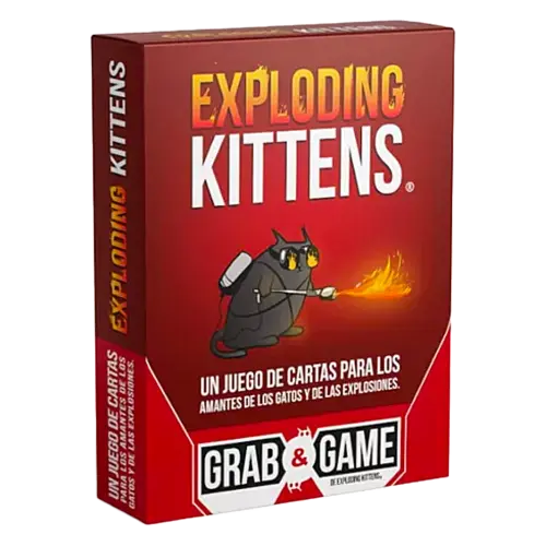 Exploding Kittens: Grab & Game es una versión con gatitos del clásico juego de la ruleta rusa. Los jugadores se turnan para robar cartas hasta que alguien saca un Exploding Kitten y pierde la partida. El mazo incluye cartas que permiten evitar la explosión mirando las cartas antes de robar, obligando a los oponentes a robar más cartas o barajando el mazo estratégicamente.