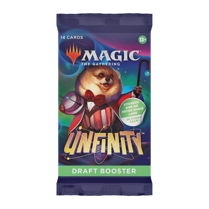 Cada sobre de Draft Booster contiene 14 cartas, ideales para armar partidas llenas de sorpresas y risas infinitas mientras exploras este carnaval cósmico.