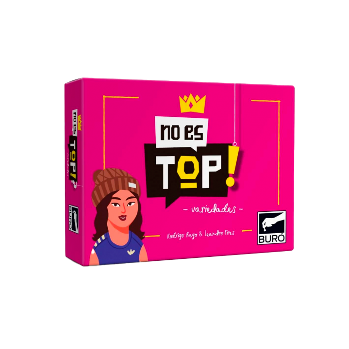 ¡No es Top! es un emocionante juego de mesa que combina estrategia, conocimientos generales y el arte de la persuasión. Ideal para reunirse con amigos y disfrutar de horas de diversión, este juego desafiará a los jugadores a adivinar los top 10 de diferentes categorías. Alternativamente, también tendrán que convencer a los demás de que saben la respuesta correcta, incluso si no es así. Es una experiencia donde la verdad y la mentira se entrelazan, poniendo a prueba tu ingenio y capacidad para leer a los demás.