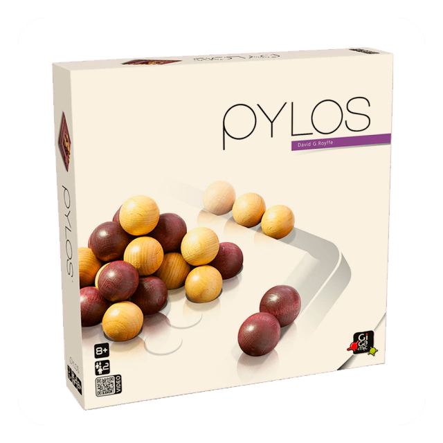Pylos es un juego de estrategia y habilidad donde el objetivo es ser quien coloque la última bola en la cima de la pirámide. Cada jugador cuenta con quince bolas de un color y, por turnos, las coloca en un tablero con una cuadrícula de 4×4. Cuando se forman cuadrados de cuatro bolas, se pueden apilar nuevas bolas, elevando la estructura hasta cuatro niveles, y quien logre colocar la última bola en la cúspide gana la partida.