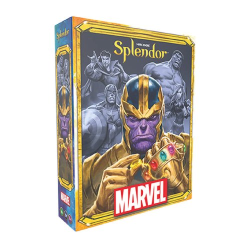 En Splendor Marvel, reúne un equipo de superhéroes y evita que Thanos acabe con el mundo. Las Gemas del Infinito están dispersas por el Multiverso y su esencia te permitirá reclutar héroes y villanos para ganar Puntos del Infinito. Forma a los Avengers, adquiere ubicaciones estratégicas y, cuando estés listo, ¡reclama el Guantelete del Infinito!