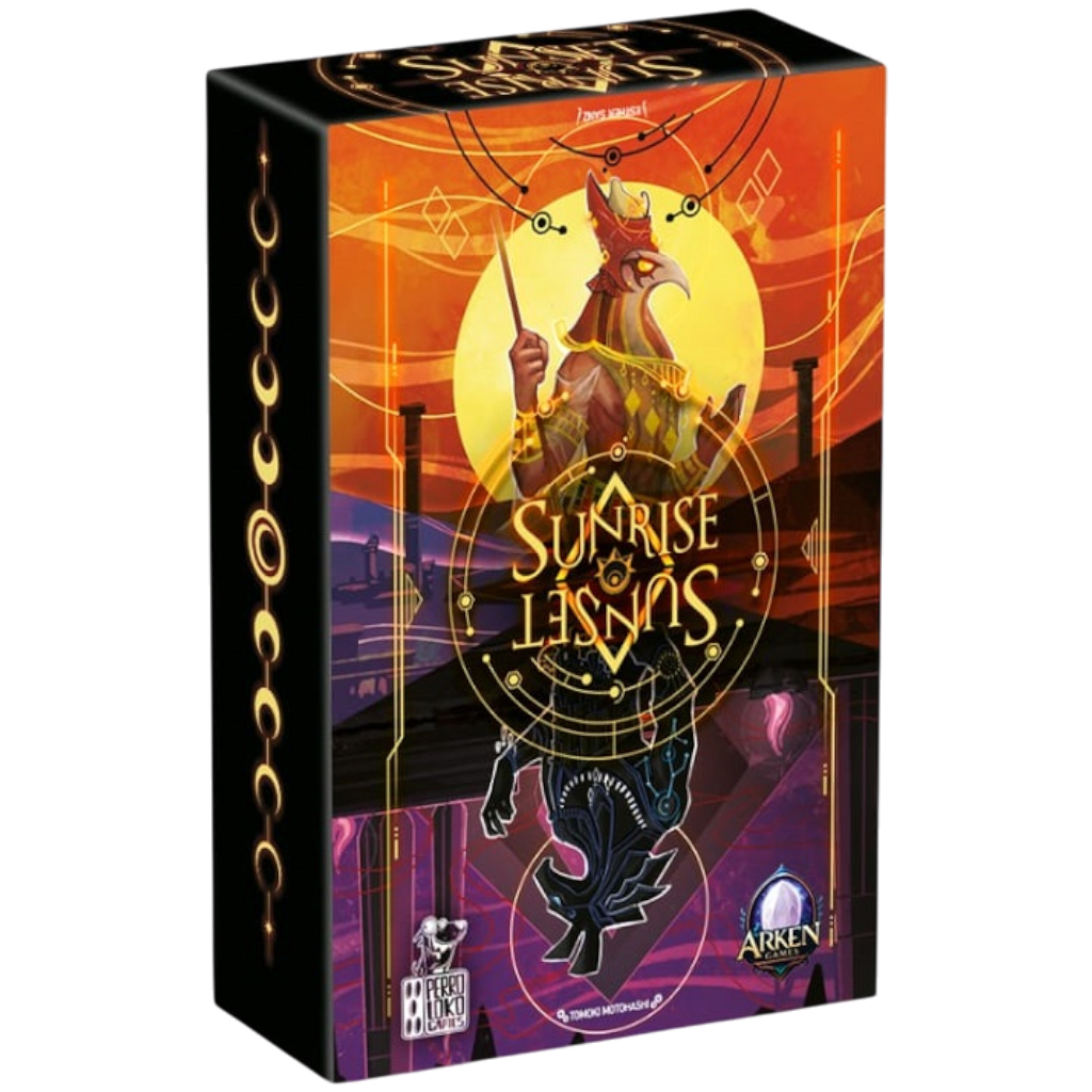 En el juego, Horus y Seth se enfrentan en tres lugares: el mundo de los vivos (el Deshret), el inframundo (el Duat) y la Barca Solar, o Mandjet, que simboliza el viaje del sol por el cielo. Sunrise Sunset es un juego competitivo para dos oponentes donde, en cada ronda, los jugadores se turnan para jugar cartas (hasta un total de 6 cada uno) para hacerse con el control de los tres lugares. En cada lugar, el oponente con mayor poder toma el control. El primer jugador en infligir tres puntos de daño gana la partida.