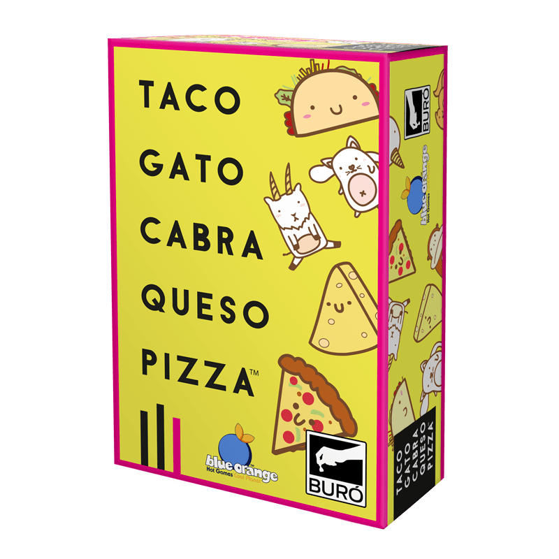 Taco Cat Goat Cheese Pizza es un juego frenético lleno de acción y risas aseguradas. Al estilo de Snap o Dobble, cada jugador coloca una carta de su mano boca arriba en el montón común mientras dice en orden «taco/cat/goat/cheese/pizza».