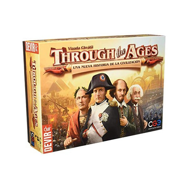 Through the Ages es un emocionante juego de estrategia y gestión de recursos. Los jugadores desarrollan sus civilizaciones desde la Antigüedad, a través de la Edad Media, hasta los Tiempos Modernos. ¿Cómo será tu civilización? ¿Guerrera? ¿Avanzada tecnológicamente? ¿Religiosa? ¿Versada en las Artes? Escoge un líder como Hamurabi, Napoleón o Gandhi. Construye las Pirámides, la Gran Muralla o la Torre Eiffel. Tu civilización tomará la forma que tú decidas y cada partida será diferente.