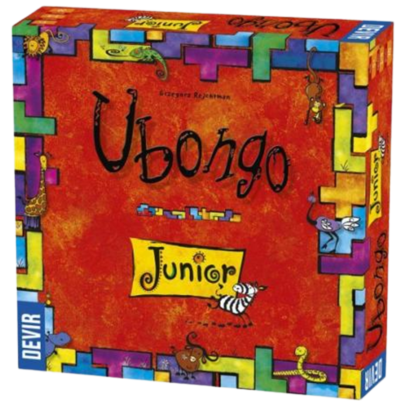 Ubongo Junior es la versión para niños del clásico juego de mesa Ubongo, adaptado con reglas más simples y un diseño lleno de color y animales simpáticos. Cada jugador recibe nueve piezas de distintos colores y formas, además de tableros de rompecabezas con dos niveles de dificultad: cubrir espacios con dos piezas en el lado fácil o con tres en el lado más difícil. Al inicio de cada ronda, los jugadores revelan su tablero y compiten por encajar las piezas correctas lo más rápido posible.